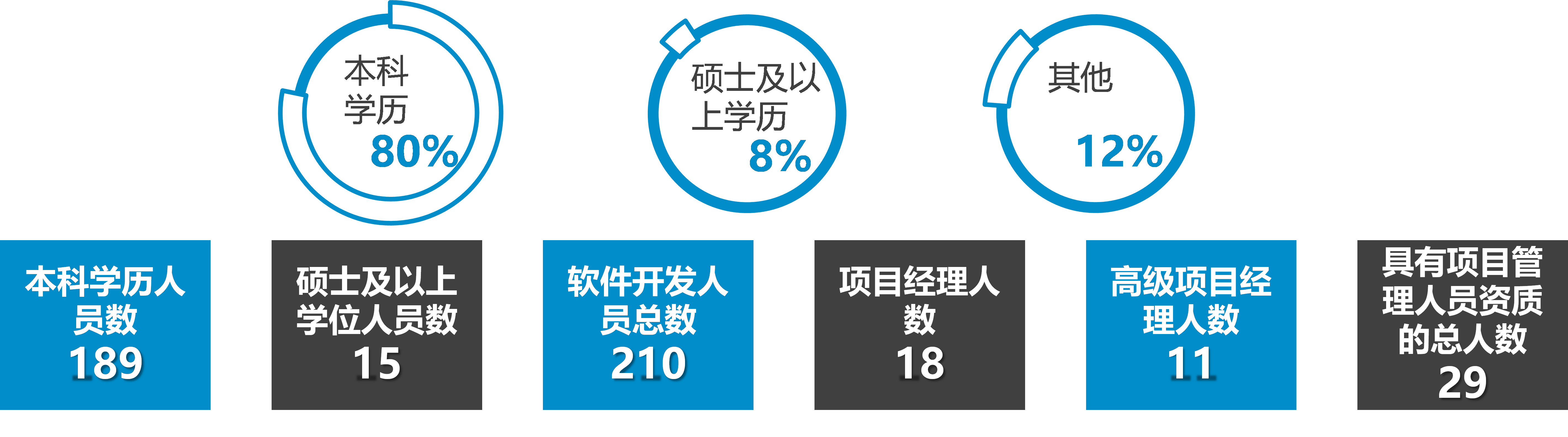 公司创立以来,吸引了一大批IT业界的精英加盟,现拥有一支由500 余名由专业的项目经理、建造师、各厂商认证工程师以及资深专业人员共同组成的创新型人才梯队。这支高学历、高素质、知识化、专业化的高水平人才队伍,覆盖了软件工程的 咨询、设计、研发、实施、集成、运维全过程,他们拥有各专业领域多年实践经验,为企业发展提供了强大的支持和不竭的动力。