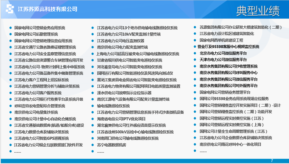 江苏苏源高科技有限公司成立于2000年,注册资金5000万元, 是专业从事大型应用软件开发、系统集成、高新技术产品研发的高科技企业,长期服务于政府、电力、交通、水务、金融、教育、 医疗、房地产、信息通讯等行业,业务遍布全国五十多个城市,已为上百家企业和政府机构提供了多元化的IT服务。
